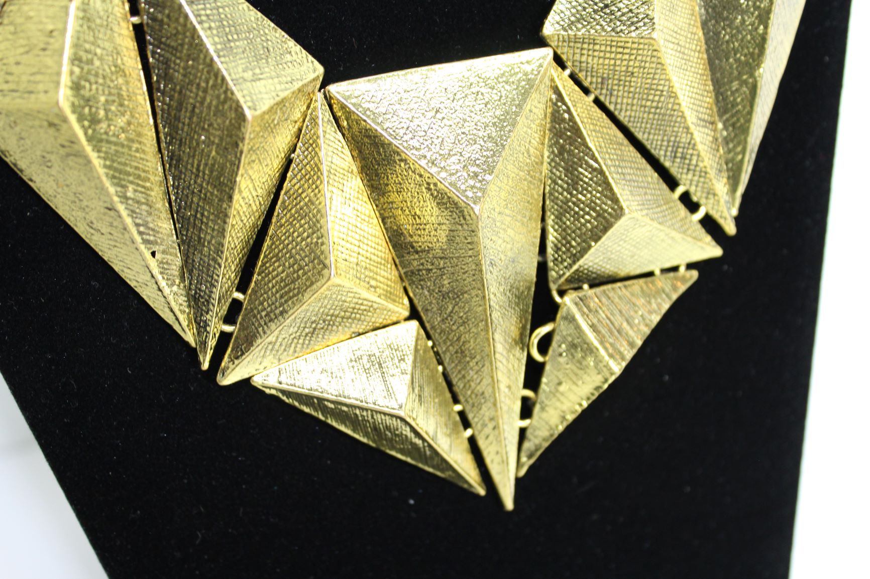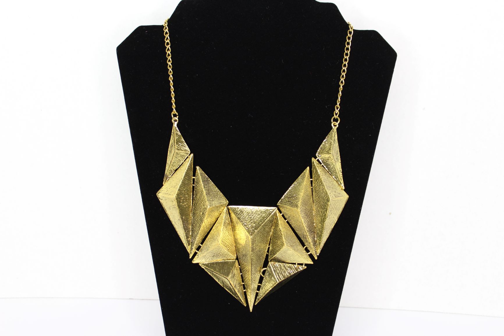 Gold triangle pendant necklace.